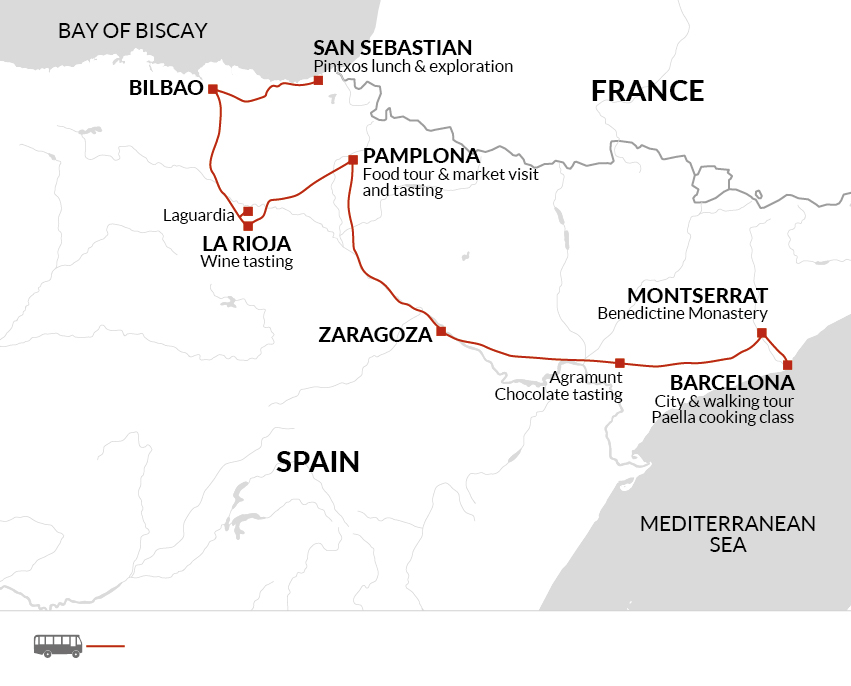 Embark on a culinary journey from Bilbao to Barcelona, savouring the rich flavours of northern Spain. From the pintxos bars of San Sebastian to the vineyards of Rioja and the bustling markets of Barcelona, this tour offers an immersive look at the diverse cuisine of this captivating region.