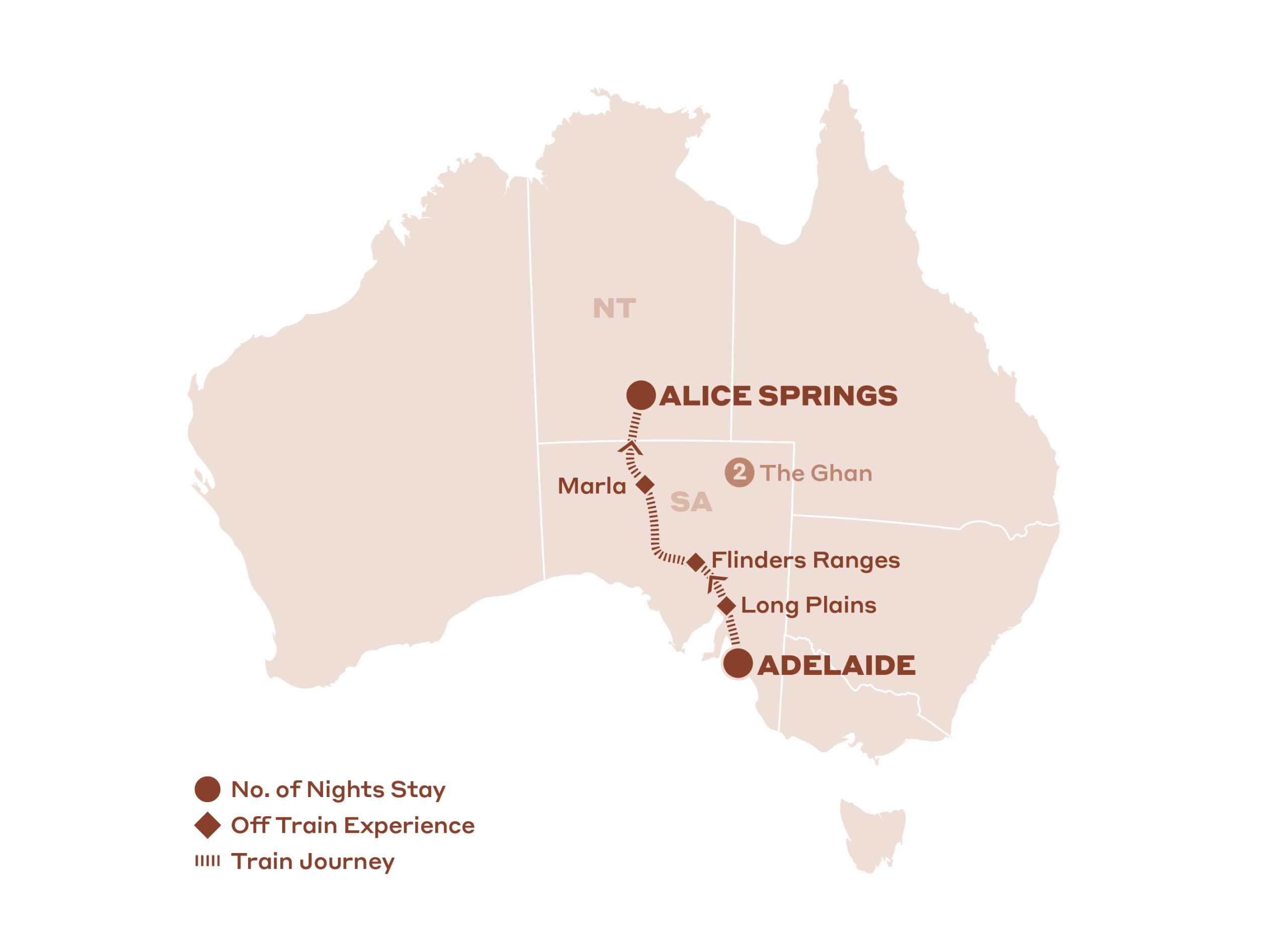 - Immersive Off Train Experiences in a South Australian wine region, Flinders Ranges Marla, Alice Springs, and Katherine