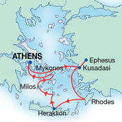 Take a trip through some of Greece and Turkey's most stunning locations on this amazing package including 7 day cruise. Starting in Athens you'll sail in comfort to Thessaloniki, the second Greek largest city. After sail to the Turkish coast town of Kusadasi, the colourful beachfront town that is a costal gateway to the Hellenistic ruins of Ephesus, then on to Rhodes, with its main town protected inside the strong walls of a castle. Follow on through to the largest island in Greece, Heraklion in Crete before stopping off in Santorini where you will get to experience the most unforgettable sunset you will ever see. Next up is Milos, one of the quieter islands where you can take the chance to sit back and really relax before heading off to Mykonos! Known for its boutique shops and lively parties it is the perfect last stop after an amazing cruise. Lastly be dropped off back in Athens.