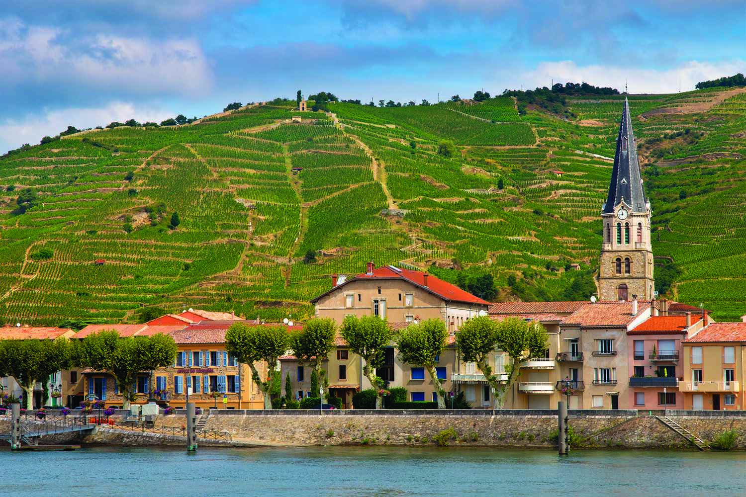 - Take a steam train ride past magnificent landscape carved along the Gorge du Doux, stopping at the charming little station of Colombier le Vieux-Saint Barthélemy le Plain, where the train maneuvers in preparation for its return journey. Alternatively, lovers of wine and chocolate will want to visit Le Château de Tournon for a presentation and tasting on the pairing of red wine and chocolate. For a more active adventure, take a hike through the vineyards of Tain l’Hermitage, followed by a visit to a local winery where you’ll sample some of the wines. Later, stroll through the city accompanied by a guide in Renaissance attire as former “residents” in period costumes reenact events and legends of centuries gone by. This special historical tour is sure to bring a smile to your lips – or perhaps send shivers down your spine! (B,L,D)