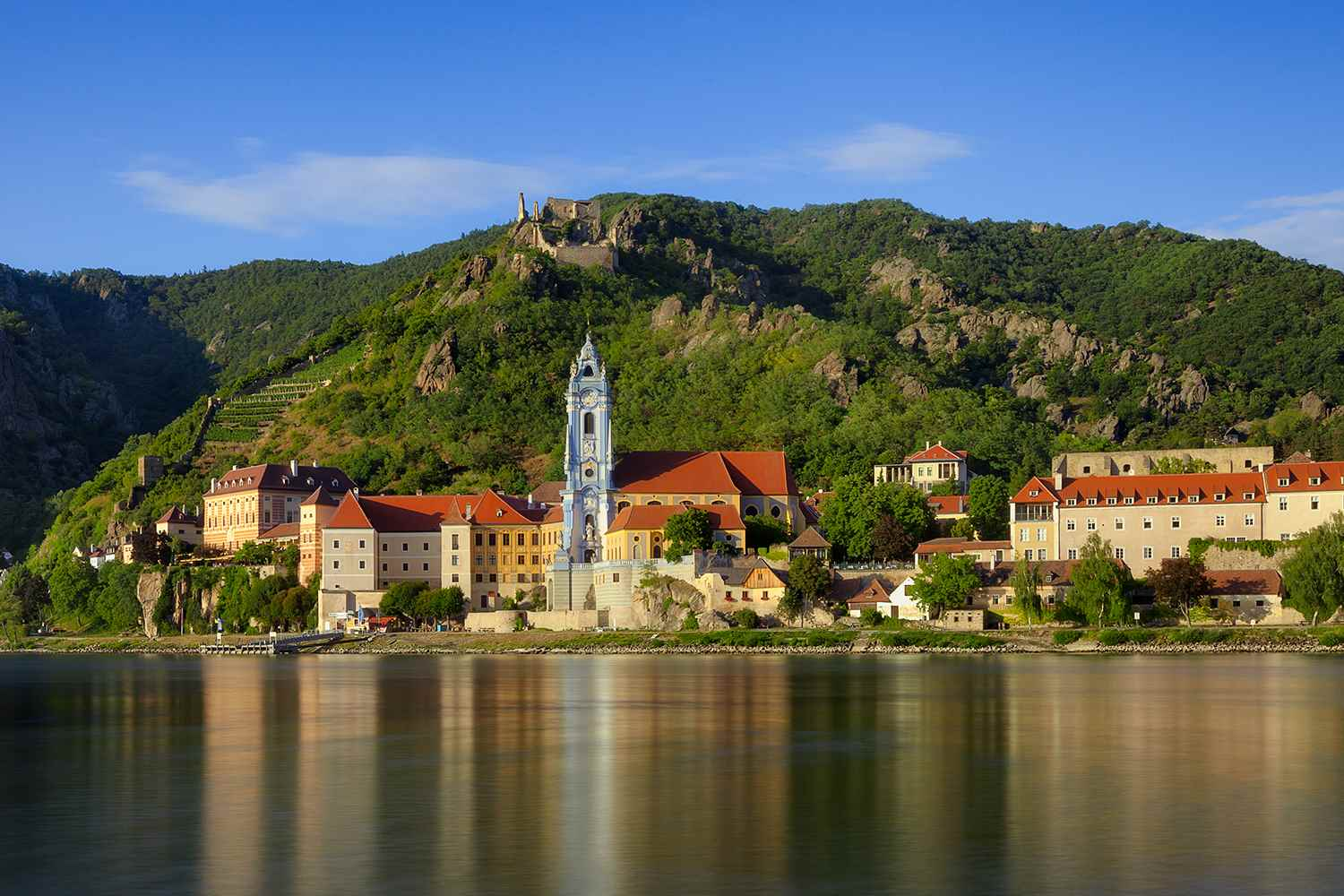 - Krems, gateway to the UNESCO-designated Wachau Valley, is your starting point for a visit to the lovely Baroque village of Dürnstein. Stroll along Dürnstein’s cobblestone streets to the Baroque Stiftskirche, with its famed church tower on a walking tour. For a more culinary-focused experience in Dürnstein, enjoy an apricot liqueur and brandy tasting and special apricot treats from a local boutique. Those who wish a more active adventure of the area can hike to historic Dürnstein Fortress or cycle from Krems to Dürnstein and back for lunch. During the afternoon, you can visit the 900-year-old Melk Abbey situated high atop the granite cliffs of the Danube; or get active with either a bike tour from Krems to Spitz or a hiking adventure in Spitz. During the evening, be treated to an exclusive wine tasting experience where you’ll enjoy some of the region’s famous wines, including Grüner Veltliner and Riesling. (B,L,D)