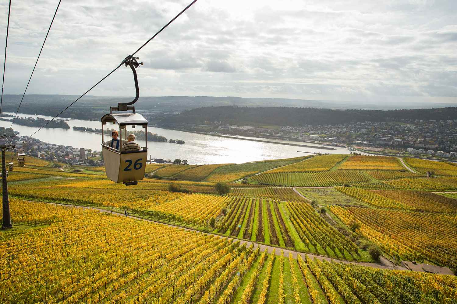 - Your exploration of Rüdesheim continues with your choice of three excursions. Take a gondola ride to the Niederwalddenkmal Statue. Afterwards, indulge your taste buds with a sampling of Riesling wines in the vineyards. Alternatively, you can join a guided bike ride through the town and along the Rhine River to Schloss Johannisberg or hike through the town’s beautiful vineyards. During the afternoon, set sail along the scenic Rhine River Gorge with its fabled legends and many castles. (B,L,D)
