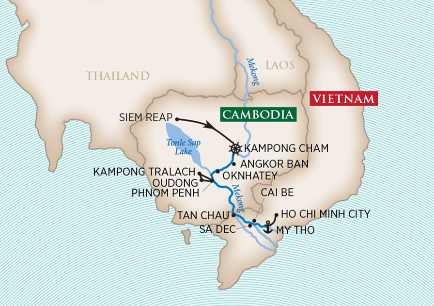 - Your cruise concludes in My Tho Port, where you’ll disembark and transfer via motorcoach from My Tho Port to Ho Chi Minh city. (B)