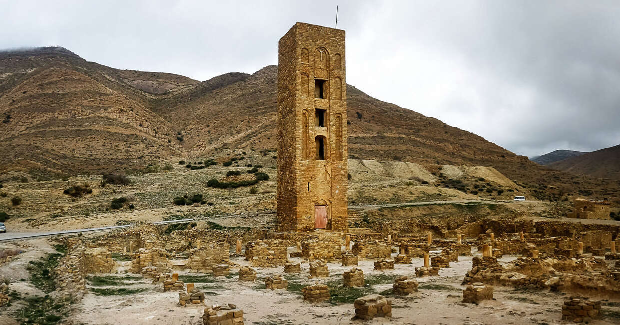 Our first stop this morning is the Al Qal'a (fortress) of Beni Hammad, which comprises a striking minaret of what used to be a very large mosque, built of roughhewn sandstone blocks. Set amongst the arid rolling hills, the area was once inhabited by the first capital of the Hammadid empire in the 11th century. Its design later influenced Arab architecture, which can be seen throughout the Maghreb, Andalucia, and as far away as Sicily. There is a small museum at the site which we'll also visit if it's open.