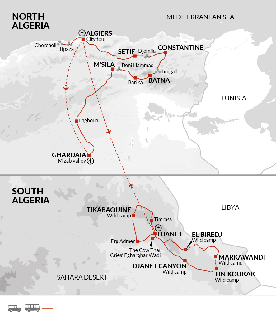 Day 9 - Return to Algiers; afternoon tour of the capital. Fly to Djanet deep in the Sahara