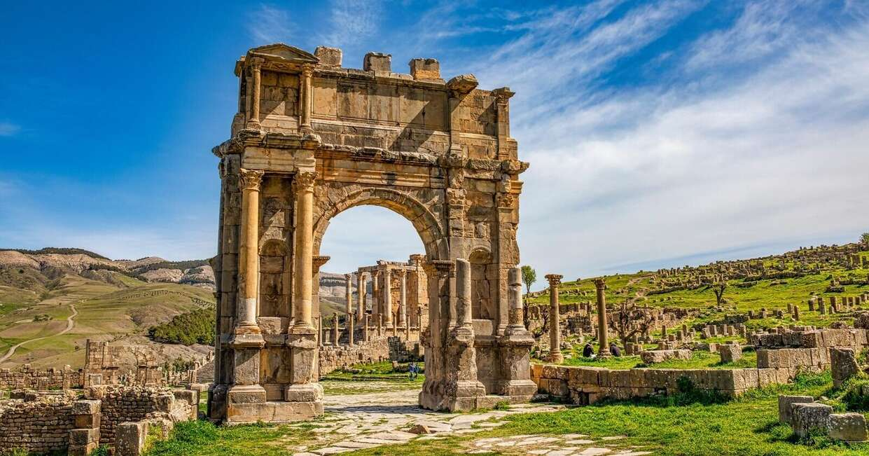 We'll continue to the town of Batna, the largest settlement in the district, where we'll have lunch. This afternoon, we'll visit the famous UNESCO Roman ruins at Timgad. Sometimes referred to as the Pompeii of Africa, this vast site was constructed under Emperor Trajan as a military base to defend against the Berbers. It was a retirement city for his Roman troops and is considered one of the best historical sites in modern Algeria. The site is located on flat ground and is one of the best-preserved grid towns, including two main paved streets which run through the site and have the old forum and a theatre. There are also the ruins of several baths and the Trajan's Arch, a 12-meter-high triumphal arch. We'll have time to wander around the maze of streets with our guide before we head back to Batna, where we'll spend the night.