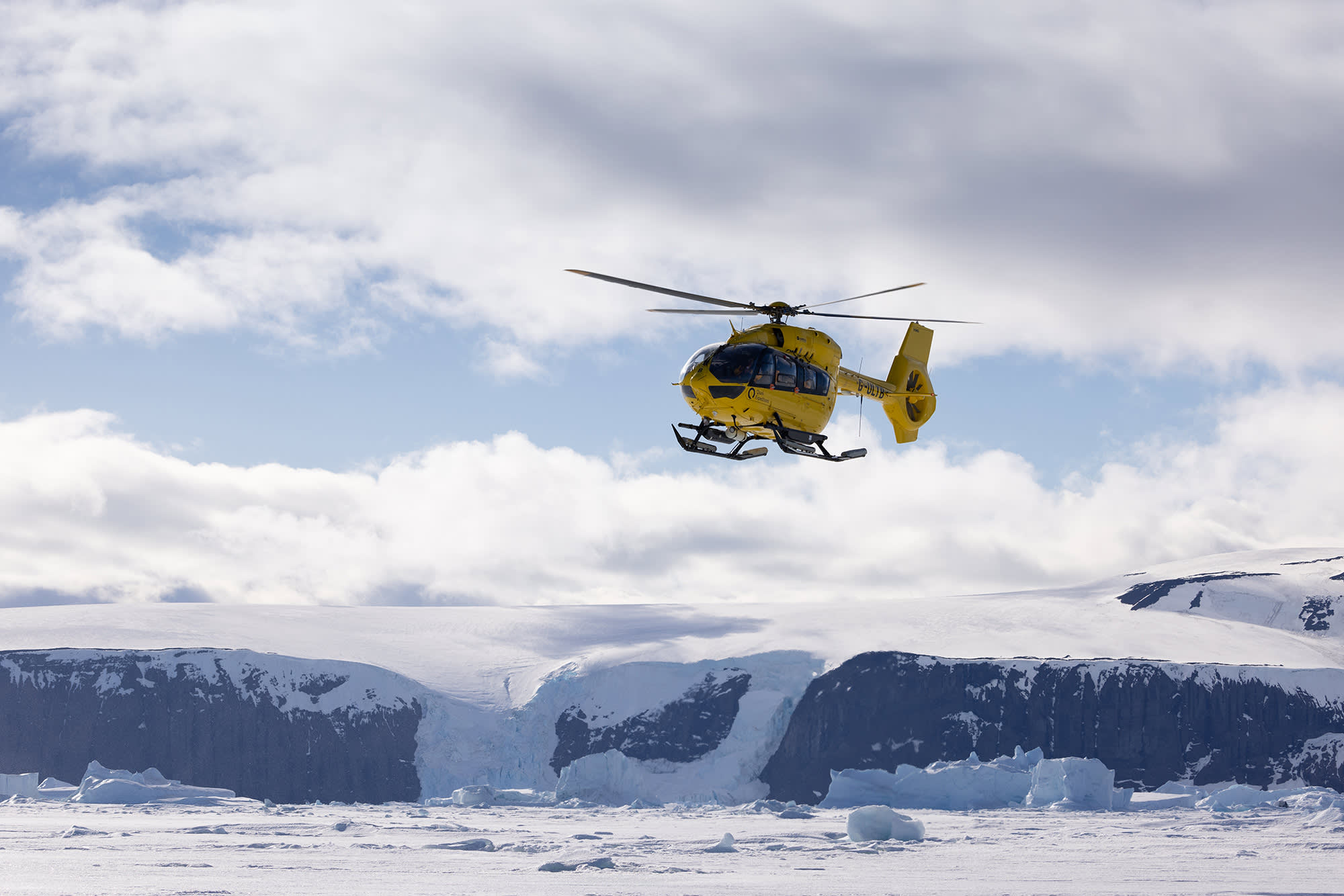 Crossing the Antarctic Circle at 66’30 is a polar milestone achieved by relatively few travelers. Our polar-obsessed expedition team has made this dream come true for modern-day adventurers for over 30 years. Because innovation is in our DNA, we wanted to make this experience even more memorable. The result is our brand-new 14-day Antarctica by Helicopter: Crossing the Circle & the Peninsula itinerary, which includes opportunities for guests to soar above the Antarctic landscape in one of Ultramarine’s twin-engine helicopters. Our goal is to maximize helicopter adventures throughout your voyage so you can experience perspectives of the 7th Continent no one else can offer. Your helicopter-supported excursions—included in the cost of the trip—feature multiple opportunities for heli flightseeing, as well as a heli landing. You'll learn what it's like to step out of a helicopter onto Antarctica and gaze upon polar landscapes previously only seen by a few fearless explorers and mountaineers. Not only will you reach the Antarctic Circle, but you’ll also explore the southern heart of the Antarctic Peninsula. And you’ll experience it all from sea—and air. Get ready to embrace the pinnacle of polar adventures.