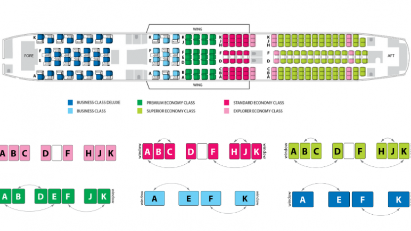 Standard economy class These are the four seats on each side of the aircraft in the Economy Class section over or near the wing, which can obstruct viewing. The window and the adjacent aisle seats will be exchanged at the halfway point of the journey. Each passenger will have a window seat or the seat next to a window seat for half of the flight and an aisle seat or adjacent for the other half of the flight. |