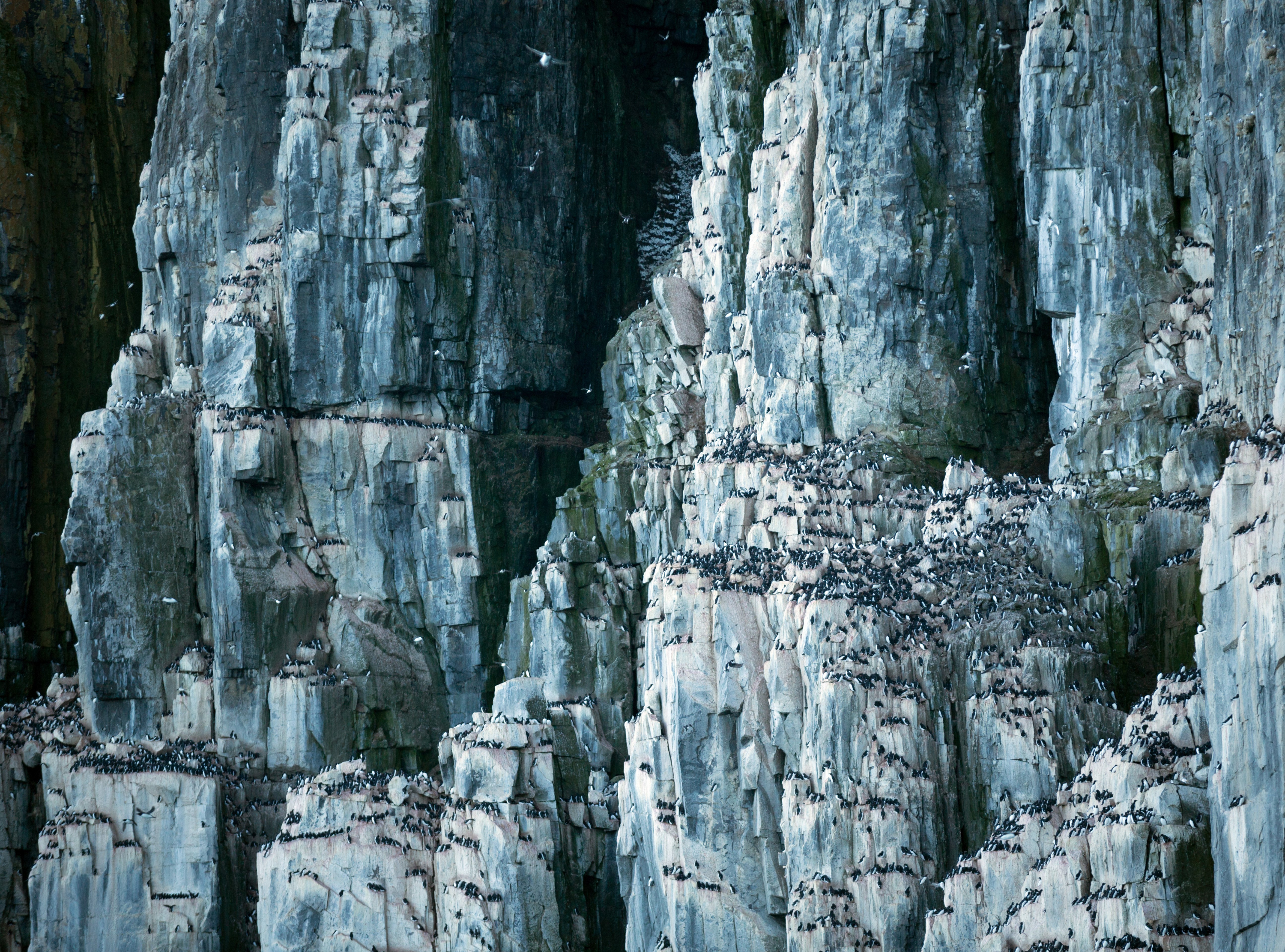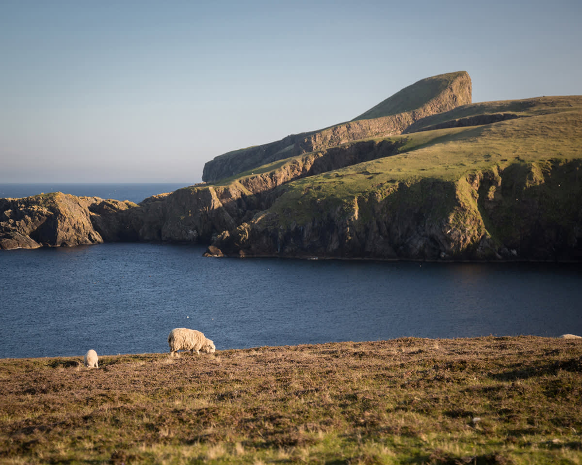 The U.K.’s most remote inhabited island, the extraordinary Fair Isle is located halfway between the Shetland and Orkney Islands. Boasting a rugged beauty, Fair Isle’s landscape is diverse, with fields and moors dominated by seaside cliffs and an astounding number of sea stacks, natural arches and caves.Despite its small size, the island offers activities for history, nature and photography buffs alike. Visit the museum to immerse yourself in local artifacts, photos, knitwear and other historic memorabilia. Don’t forget to snap a shot of the circa 1935 classic red phone booth by the post office!In terms of wildlife, orcas are native to the waters around Fair Isle, and they sometimes come close in pursuit of seals. But the island is best known for its coastal cliffs teeming with seabirds in spring and summer. The star attraction is the Atlantic puffin, a clown-like bird that burrows in nests in the grassy flat tops of the island’s cliffs. Photographers will surely want to capture pictures of their bemused expressions, and Fair Isle’s easily accessible grassy banks make it one of the best places in the Shetlands (if not the entire Scottish Isles!) to observe these colorful creatures. Northern fulmars, kittiwakes, storm petrels, razorbills and guillemots may be spotted soaring over the open waters.Visitors to this community of crofters, artisans and artists may be able to pick up a traditional Fair Isle sweater to keep warm during the rest of your Arctic voyage.