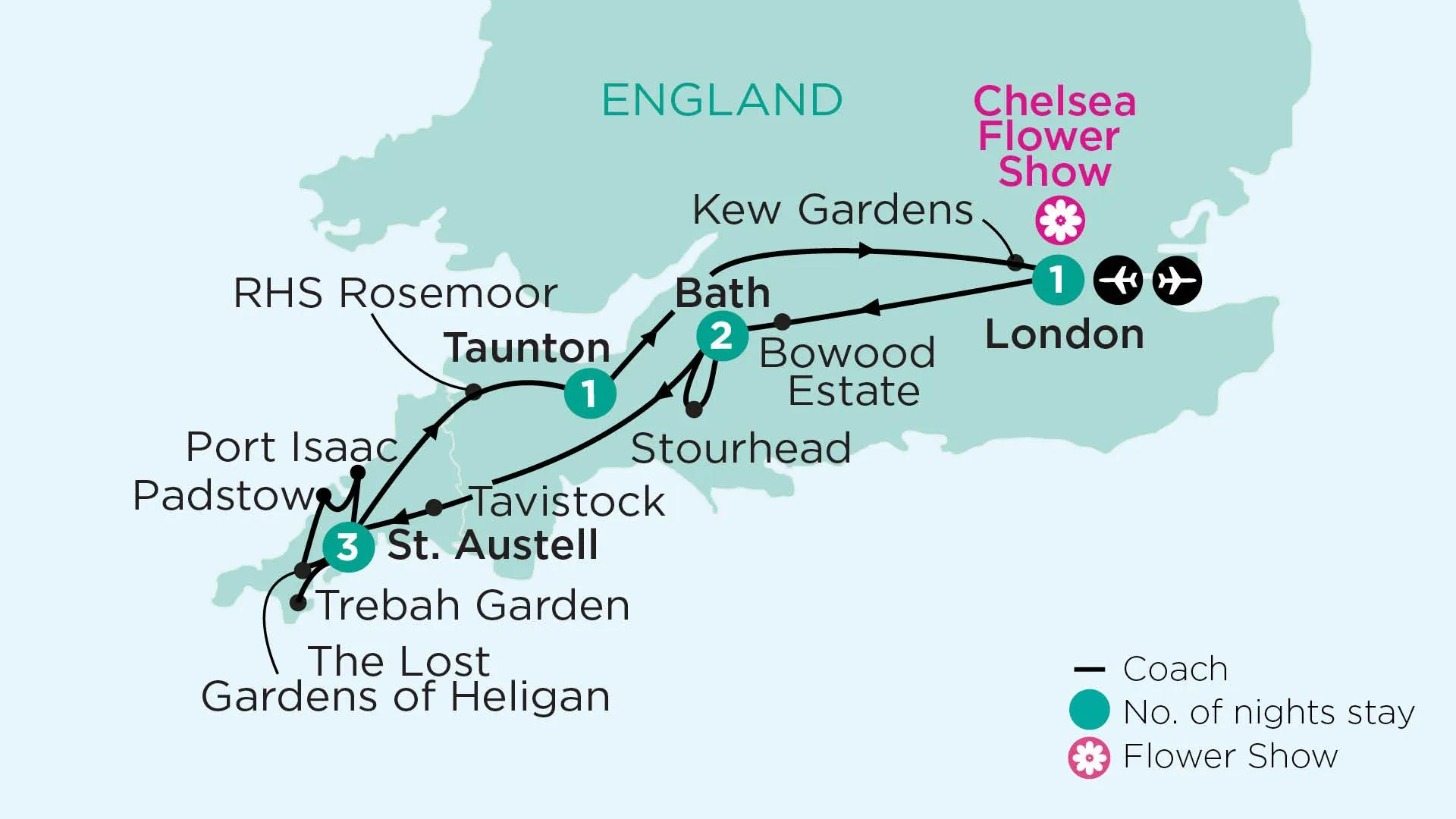 For those looking to see another side of England, take in the intriguing Lost Gardens of Heligan and the estate of Stourhead, whose idyllic landscapes resemble a Renaissance painting. Enjoy lunch at Rick Stein’s flagship seafood restaurant and see Doc Martin filming locations. Peruse the world’s largest collection of plants at Kew Gardens and spend the day at Chelsea Flower Show.