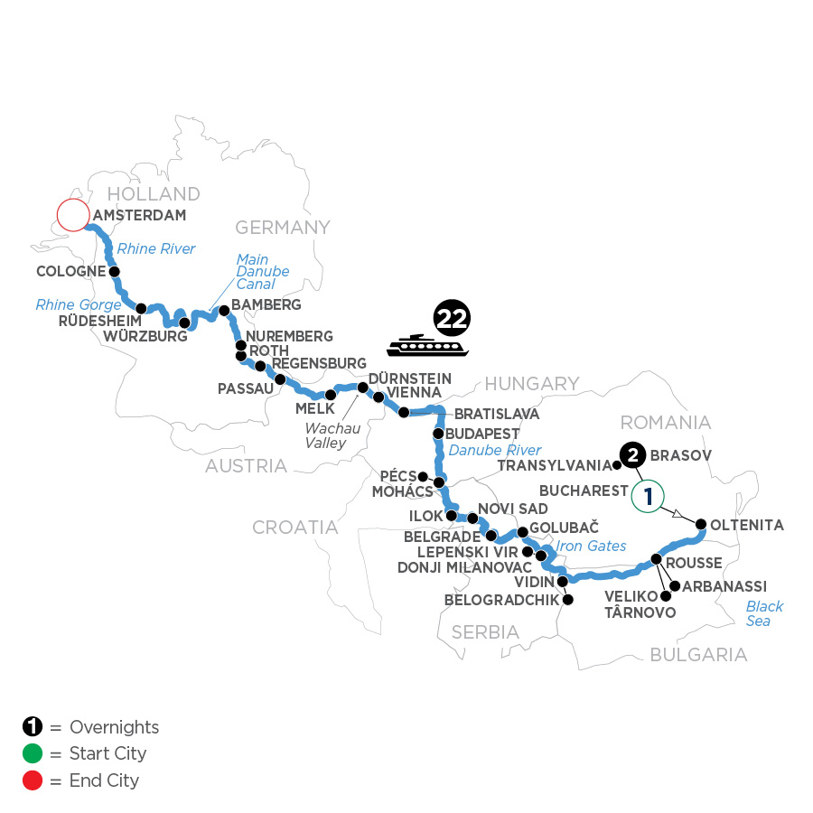 Historic BucharestCLASSIC Join a Guided Excursion in Bucharest, see the Royal Palace Square—the scene of the city's 1989 riots to overthrow the communist dictator Nicolae Ceausescu. Join your Avalon Suite Ship® this afternoon, for embarkation in Oltenita.EVENING/OVERNIGHT CRUISE TO ROUSSE(B,D)