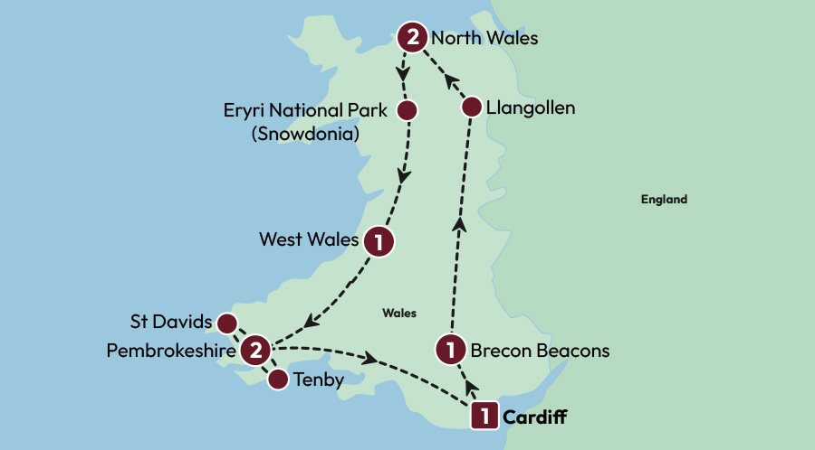 Soak up the wonders of Wales on this captivating journey through emerald-green valleys and along breathtaking coastline. Feel the rhythmic heartbeat of a historic train ride, savour the classic flavours of a traditional afternoon tea, and admire the distinctive beauty of medieval ruins that whisper tales of times gone by. The Land of Dragons is yours to discover...