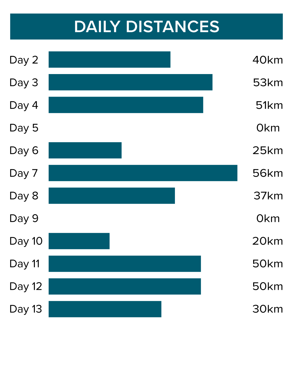 Our total cycling distance today is approximately 25 kilometres/15.5 miles. Around 80% of today's riding is off-road but not technical.