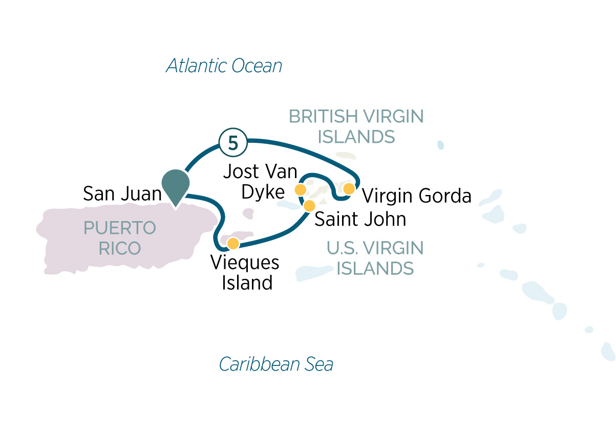 On this memorable 6-day cruise through the sparkling Caribbean Sea, you’ll spend time exploring the breathtaking Virgin Islands – both the U.S. and British territories. From the historic capital of Puerto Rico, San Juan, you’ll set sail onboard your Emerald Cruises luxury yacht to your first exciting destination, Vieques Island. Its charming coastal town of Esperanza welcomes with a bustling social scene along its picturesque waterfront, as does Cruz Bay on St. John Island, where the easy-going Caribbean lifestyle makes leisurely city strolls a real joy. You’ll continue exploring the gorgeous Virgin Islands with a stop at Jost van Dyke, with time to enjoy the pristine beaches. Then discover the remarkable series of grottoes at Virgin Gorda, where dazzling white sands, transparent turquoise waters and giant boulders meet. Your luxury cruise concludes, returning to Puerto Rico and vibrant San Juan.