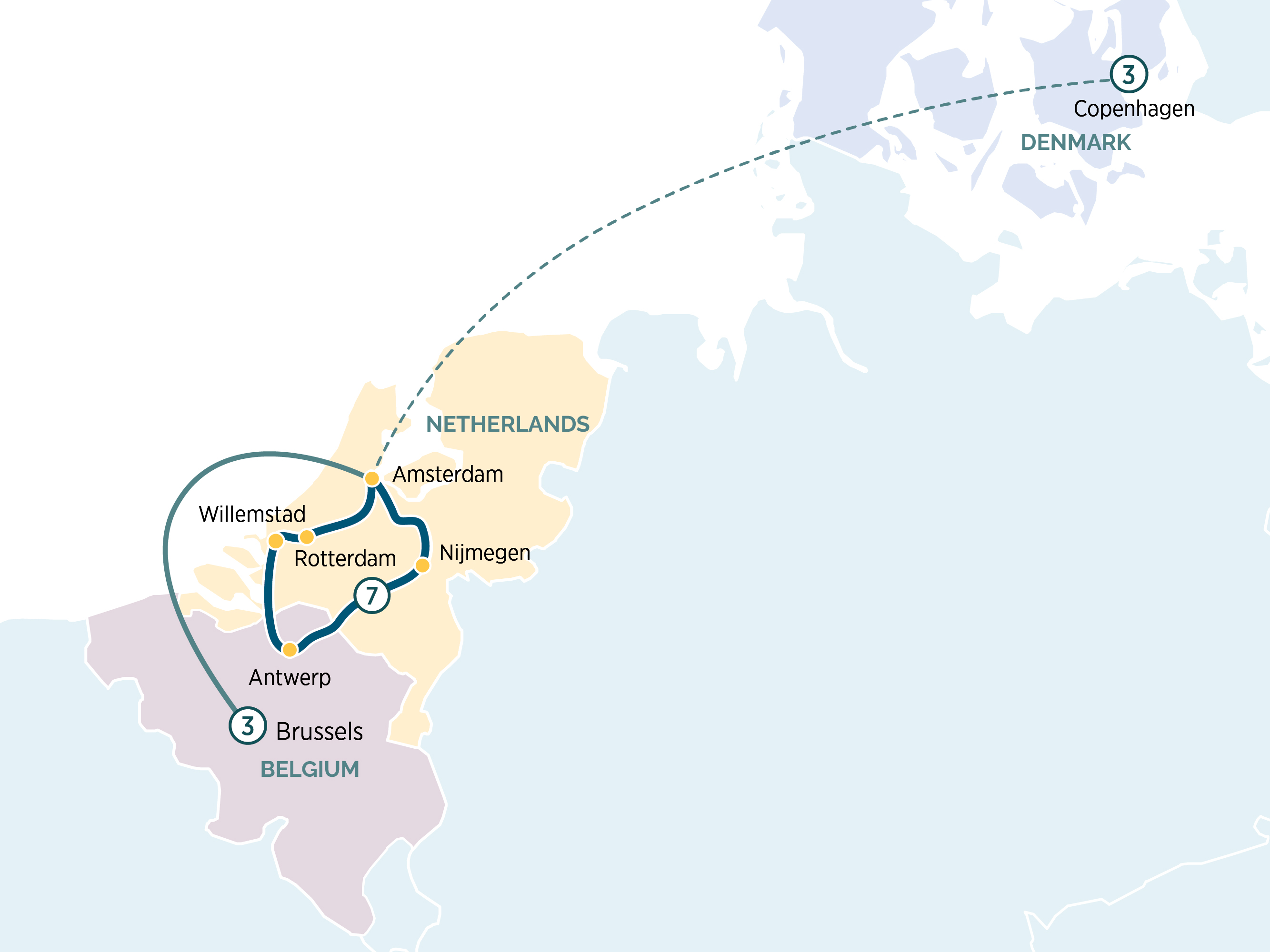 This morning, after breakfast, it’s time to say farewell to charming Copenhagen and transfer to the airport for your onward flight to the Netherlands and Amsterdam, where you'll embark on your luxury Emerald Star-Ship.
