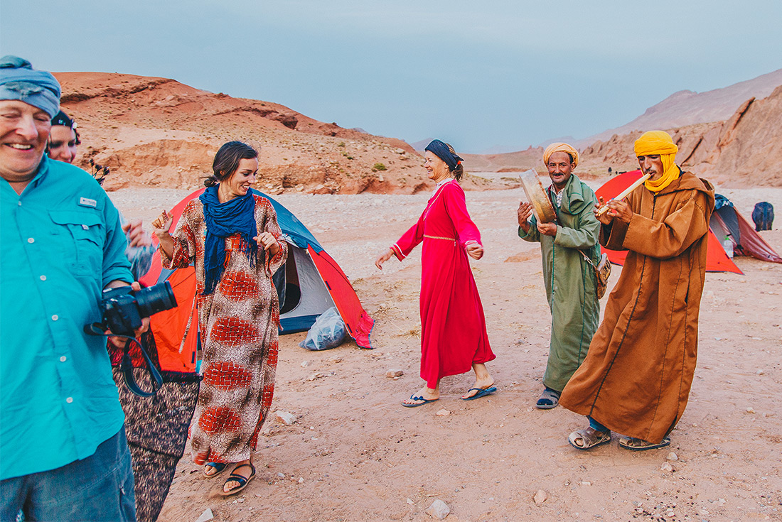 It’s time to explore Marrakech at your own pace, today. In the seemingly endless mosaic of souqs, each is devoted to a separate trade – pottery, woodwork, copper, leather, carpets or spices. Watch skilled artisans perfect their craft, practice your haggling skills or take a break from the hustle to share a tagine with your new friends. Maybe visit Koutoubia Mosque and its 12th-century minaret, which was the famous prototype for the Giralda tower in Seville. Wander through the tropical gardens of the French painter Jacques Majorelle (now owned by Yves Saint Laurent) or check out the Palais Bahia, a superb example of Muslim architecture. This evening, you’ll likely be drawn back to the Djemaa el-Fna and its surrounding medina for dinner at one of the many outdoor restaurants lining the square – a perfect spot for a farewell dinner.