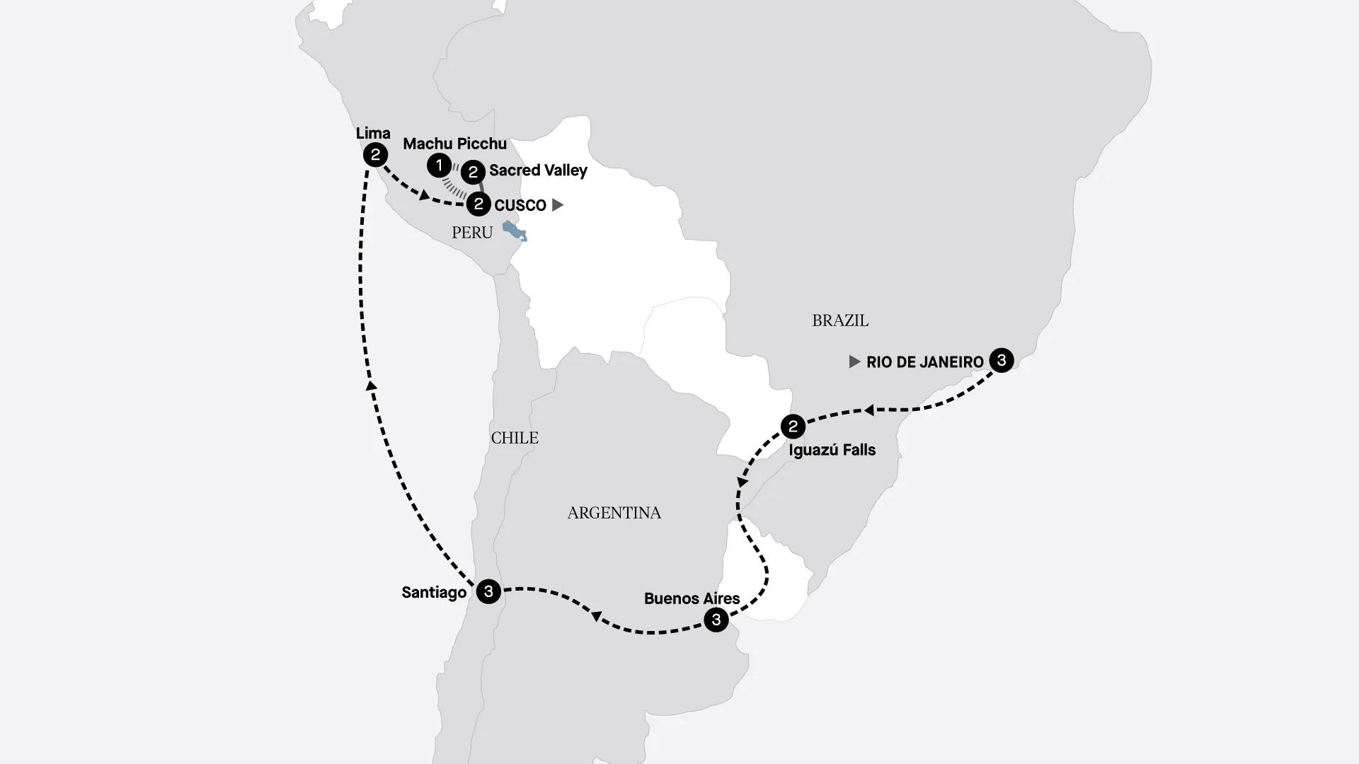 This journey dives into the heart and soul of Chile, Argentina, Brazil and Peru. Discover Iguazú Falls, the Sacred Valley and Machu Picchu’s inimitable mountain location. As well, discover the diverse South American cities of Santiago, Buenos Aires, Rio de Janeiro, Cusco and Lima.