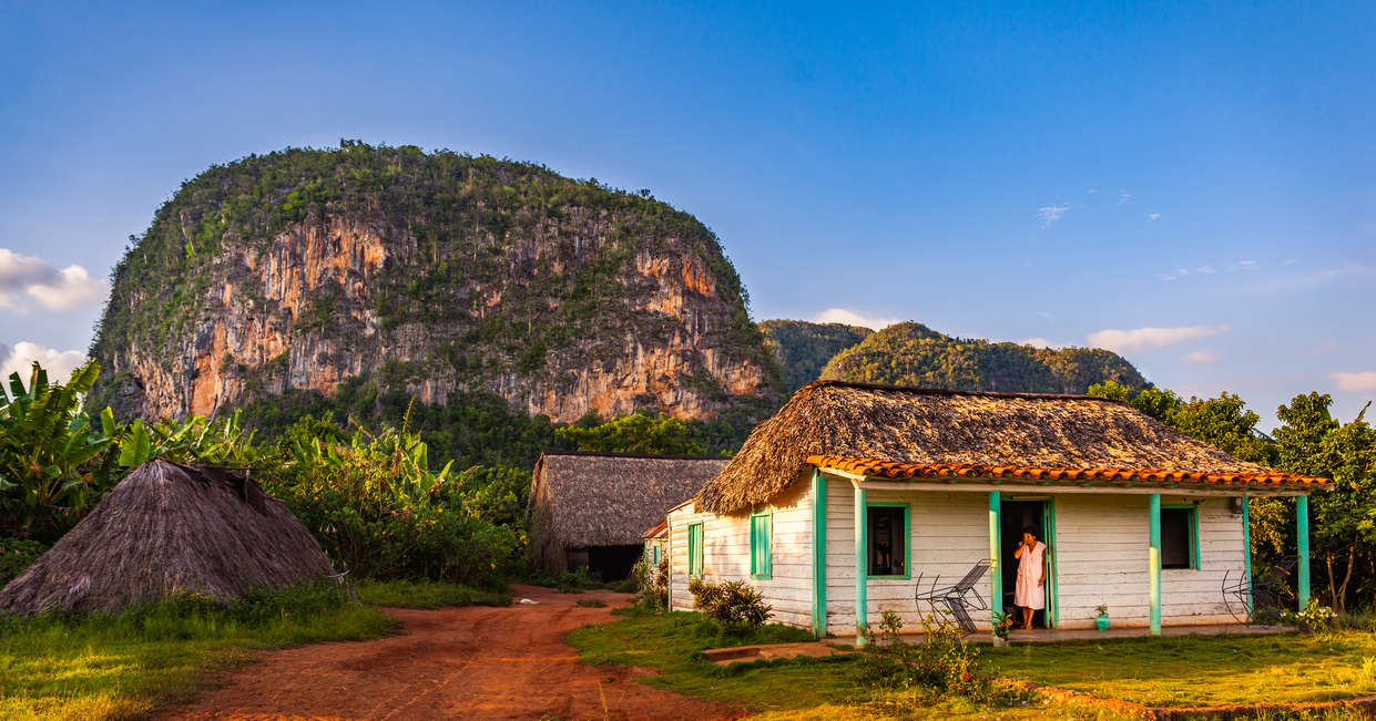 This morning, we'll travel three hours west to the Vinales region - arguably the most picturesque part of Cuba. Here, surreal mountains - the result of the erosion of limestone over millions of years - jut out of the landscape. They're locally known as 'haystacks' (or 'mogotes' in Cuban Spanish) thanks to their steep sides and rounded, jungly tops. Around them, are a patchwork of tobacco fields, with their iron-rich, red soil - the raw material for Cuba's famous cigars.