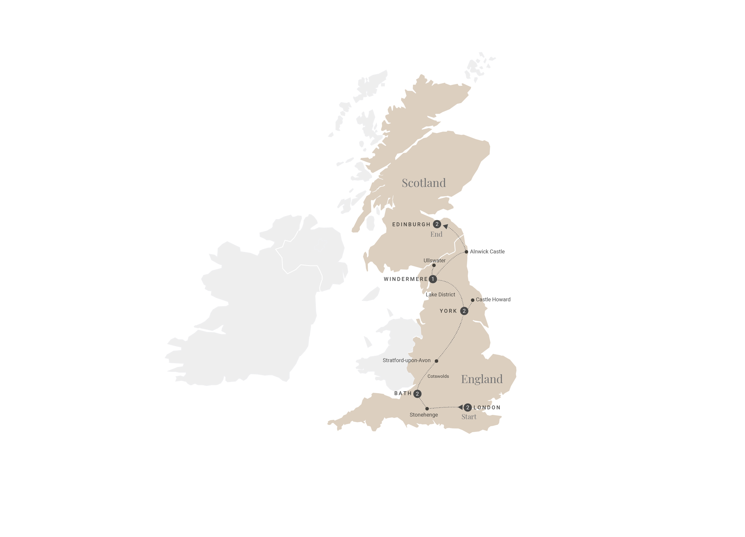 Experience Great Britain in all its luxuriant glory as you explore Alnwick and Edinburgh Castles. At the Tower of London, join the Yeoman Warder for a Ceremony of the Keys—a time old tradition carried out for the past 700-years, to help guard the Crown Jewels. Journey in style from Viking York to the magnificent Castle Howard for High Tea in the grand surrounds of the Grecian Hall, followed by a private tour of the castle and its grounds, after it closes to the public. In Bath join a Local Expert to visit Roman Baths, one of the greatest religious spas of the ancient world, before enjoying a spectacular lunch at The Olive Tree. This Michelin-starred restaurant serves up a mouthwatering menu of locally sourced, seasonal fare, paired with fine wines.