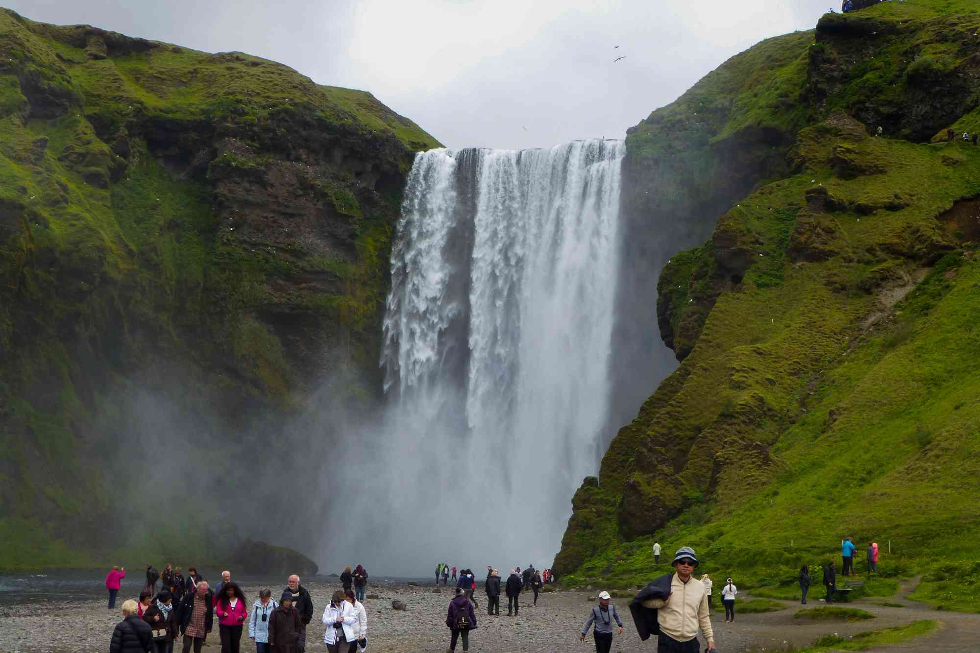 Perhaps the most exciting part of our day, we’ll explore the Reynisfjara Black beach, the Skógafoss and Seljalandsfoss Waterfalls. Skógafoss is one of Iceland’s biggest waterfalls, with a drop of around 60 metres, and it’s also one of the most beautiful, with its water stream cascading over a lush cliff. Seljalandsfoss Waterfall is arguably one of Iceland’s most impressive with its elegant stream of water plunging deep into a round dish at the entrance of a cave that has formed over centuries. It’s one of the few waterfalls in Iceland that you can actually walk behind!