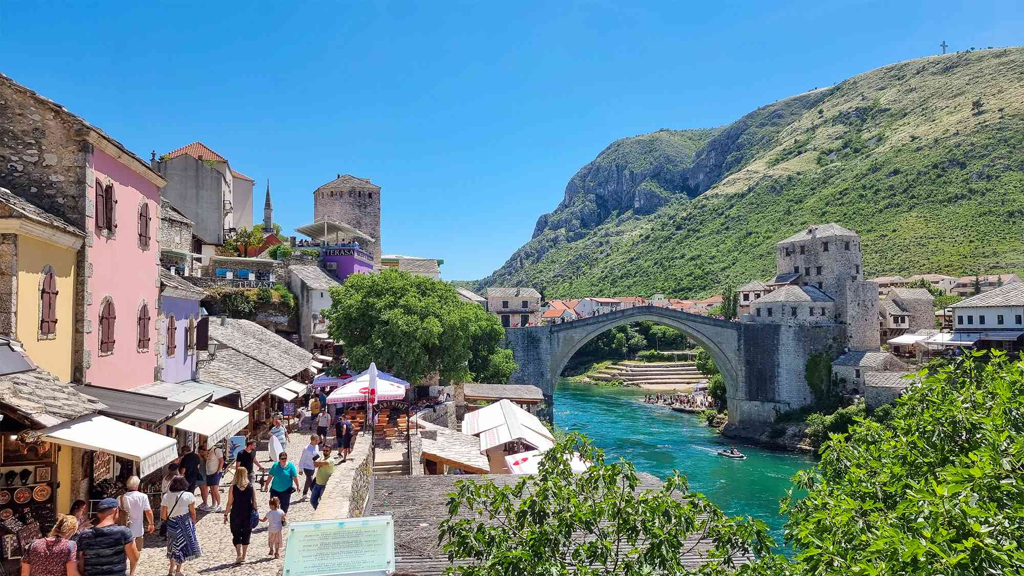 We bid farewell to Sarajevo this morning and travel through the spectacular gorge valley of the Neretva River to the historic town of Mostar.