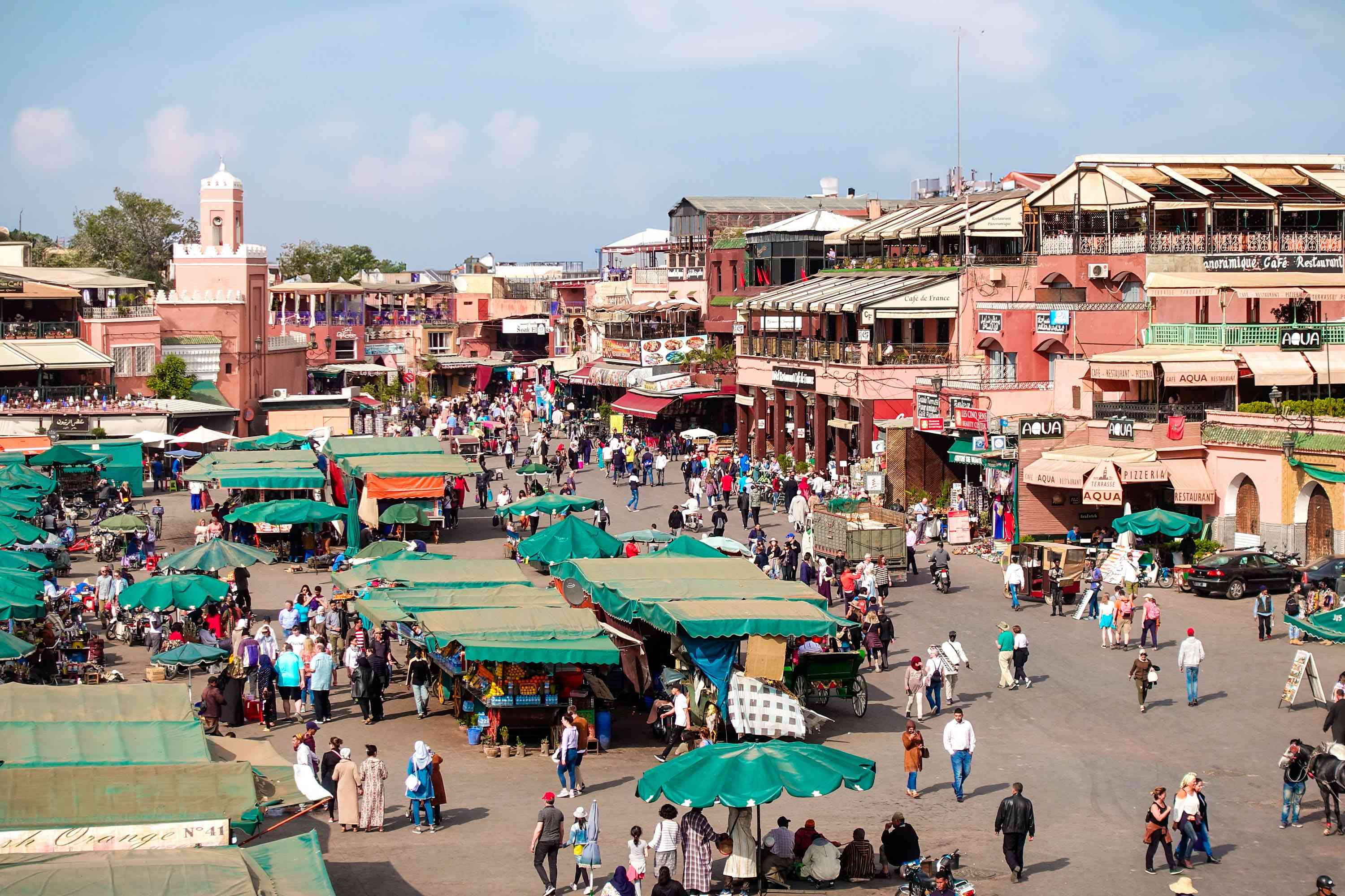 First, we’ll visit the 16th century monument site of the Saadian Tombs which remained sealed until 1917 when they were rediscovered. The tombs are brilliantly decorated with intricate carvings, colourful tiles and Arabic scripts. We then continue on to the aristocratic Bahia Palace which functions as a Royal residence and see the Koutoubia Mosque, considered a masterpiece of Islamic architecture.