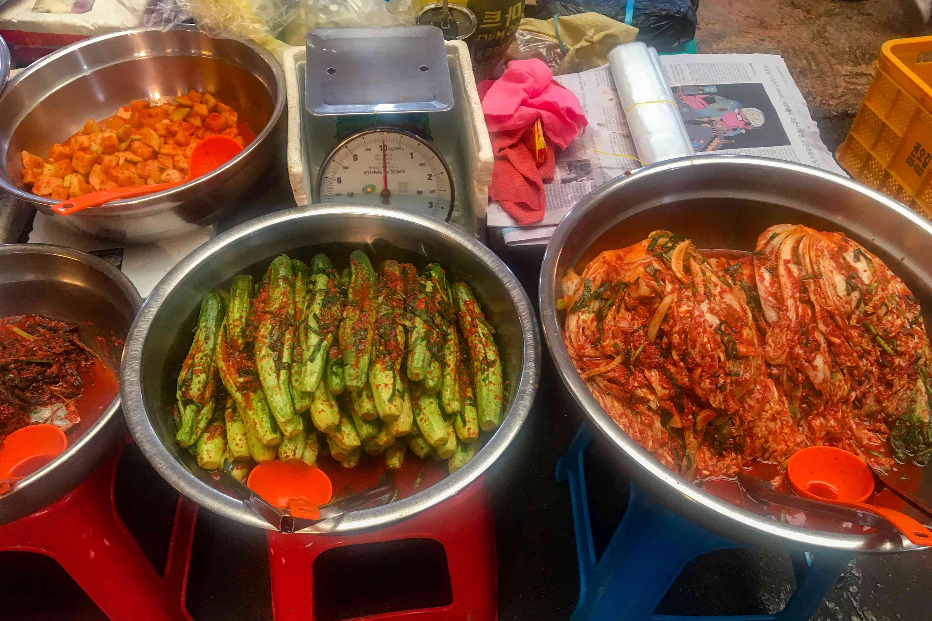 Learn all about Korea’s fascinating cuisine at a kimchi making experience, South Korea’s staple side dish made from fermented vegetables.