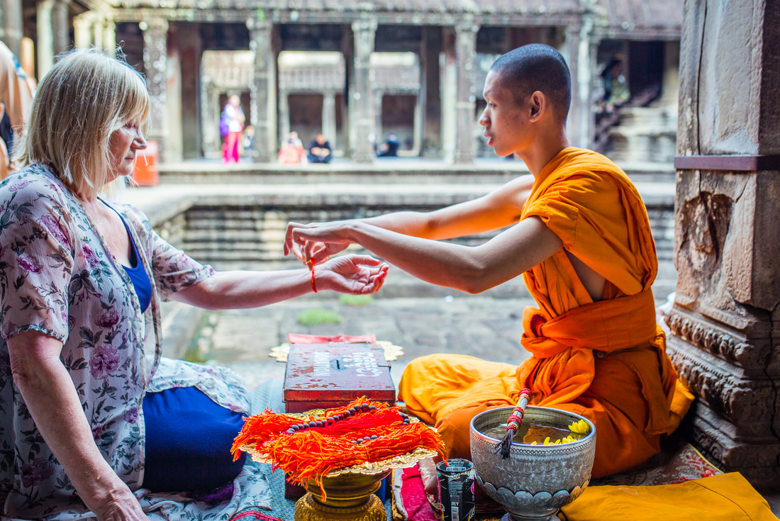 Take a bicycle ride into the countryside. The ride is easy and takes mostly shady roads through local villages. Along the way, stop to experience rice paper making, fruit drying and preparation, production of the famous prahok (fish paste) and rice wine making at local homes. Finish up at the best Kralan (sticky rice in bamboo) stall in the district. After, you’ll head to Siem Reap via private vehicle (approx. 3 hours). this small but expanding town is the gateway to the UNESCO World Heritage site of the Angkor complex. This is the most popular destination for travellers in all of Cambodia (maybe even in Southeast Asia!). You'll probably notice a change of pace here, so maybe take a walk and enjoy the atmosphere when you arrive. A visit to the old market is a must, even if you're not looking for souvenirs – wandering through the stalls and surrounding shops, you’ll find silks, cotton, sarongs, silver and statues among a flurry of colour. There's also a long tradition of shadow puppetry in the region, so if you're lucky, you might even catch a show at one of the local restaurants tonight.