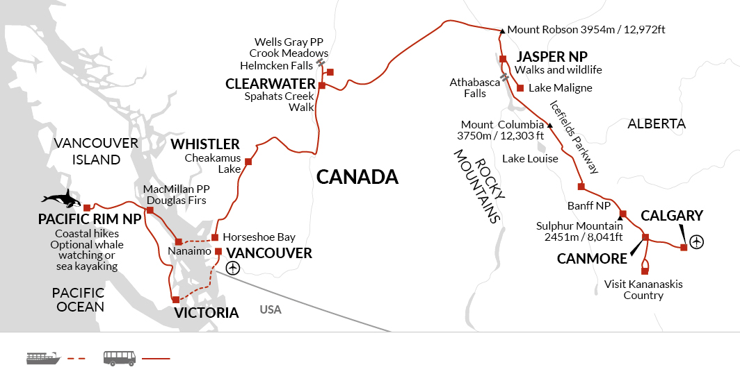 Please note that following on from the 2024 wildfires in Jasper National Park, there is some uncertainty of what will and won't be open this season. This day will therefore have a degree of flexibility, and the Tour Leader may adjust the trip depending on what is open and accessible.