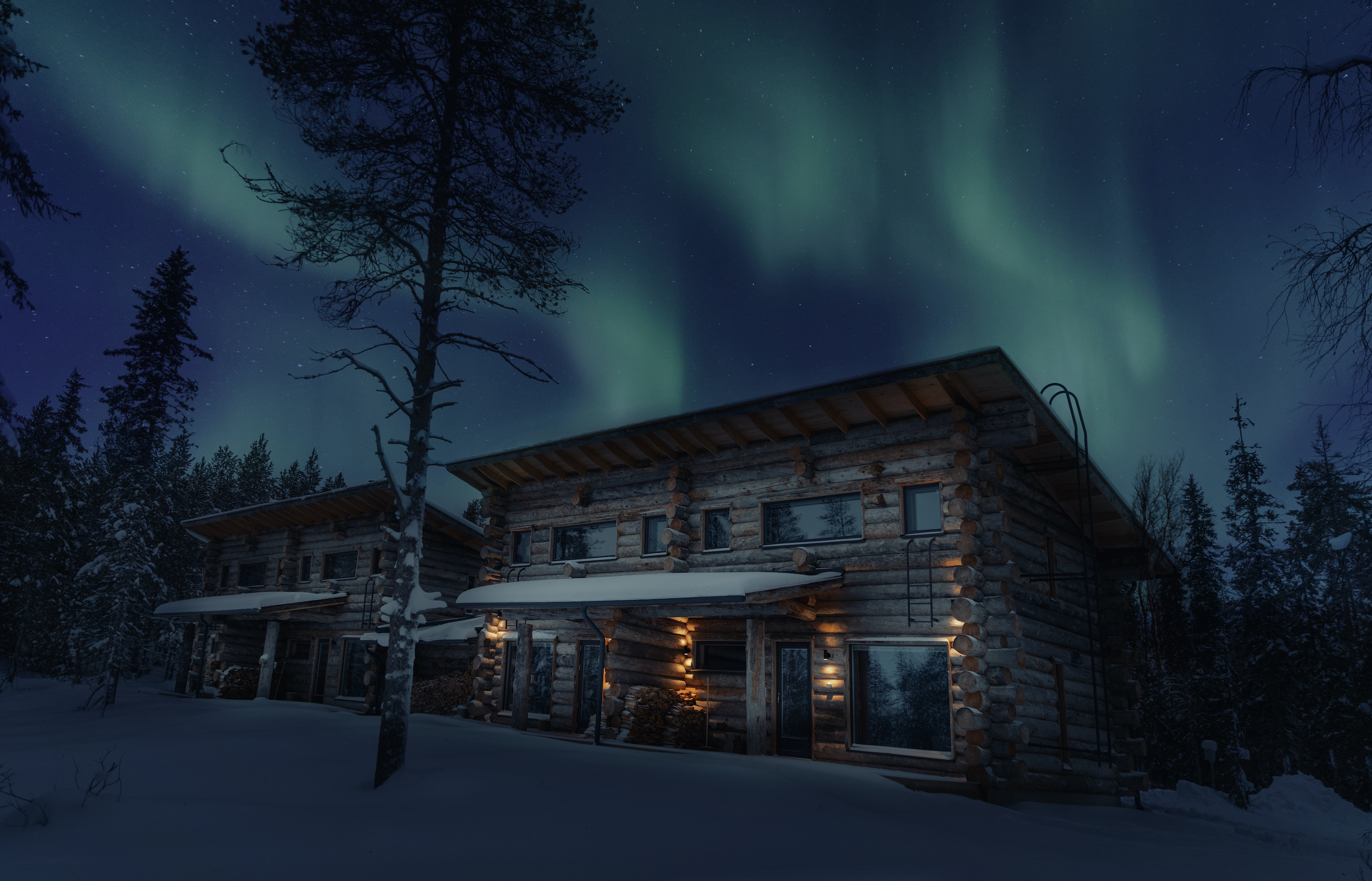 - 5 nights' accommodation in your private log chalet or villa-apartment (Sky View Villa). Each chalet has different furniture and styles. The villa-apartment has glass windows on the roof.