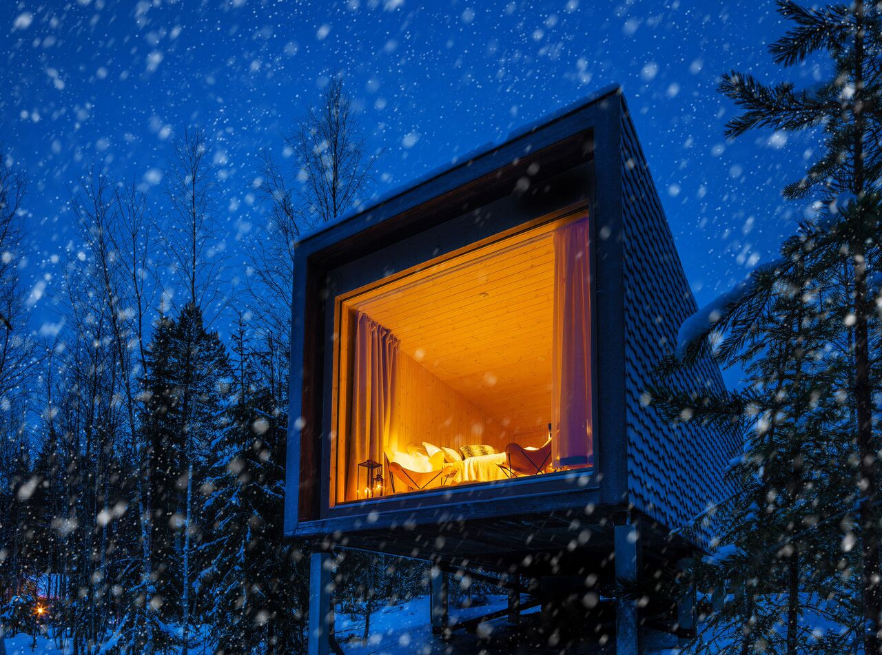 The Arctic TreeHouse Hotel is situated in the forest within the Santa Park at Rovaniemi. With spectacular views over the treetops, the TreeHouse suites offer an exclusive combination of local tradition, Lappish heritage and modern Scandinavian design. The atmospheric lounge area invites you to celebrate Christmas relaxing with your friends and loved ones while the panoramic restaurant offers delicious continental and local cuisine in unique surroundings.