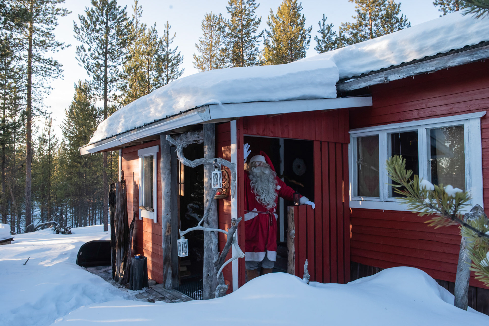 - Santa program for both departures. This program includes being seated in a snowmobile towed sleigh with fur covers for a short ride through the forest to a cabin in a secret location. You are dropped by the door of the cabin and meet Santa inside for approximately 5-10 minutes with a small gift from Santa (30-40 minutes in total). Time and changes depend on the schedule you receive on arrival. This is a small group with maximum 8 people including children.