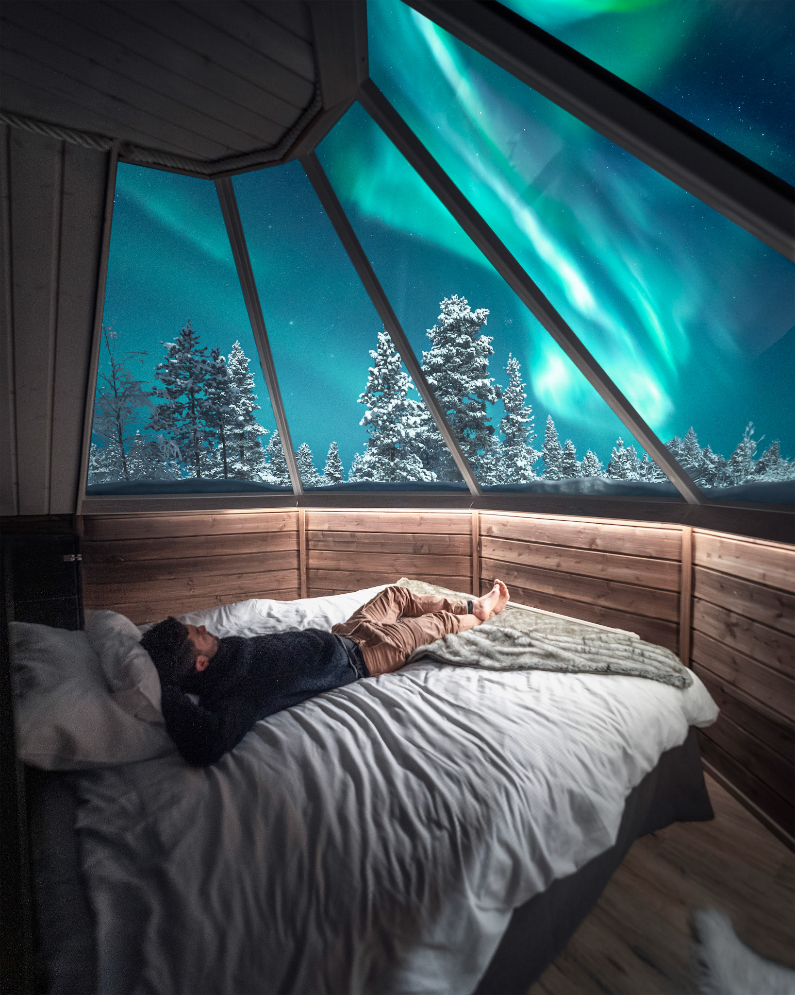 - Accommodation in Aurora Glass Cabin with full board (breakfast, lunch and dinner)