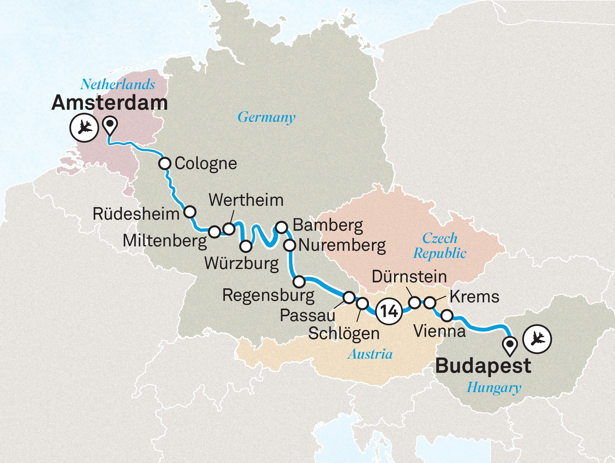 - Soak up the festive atmosphere in Europe during visits to the Christmas Markets along the Danube , Main and Rhine Rivers