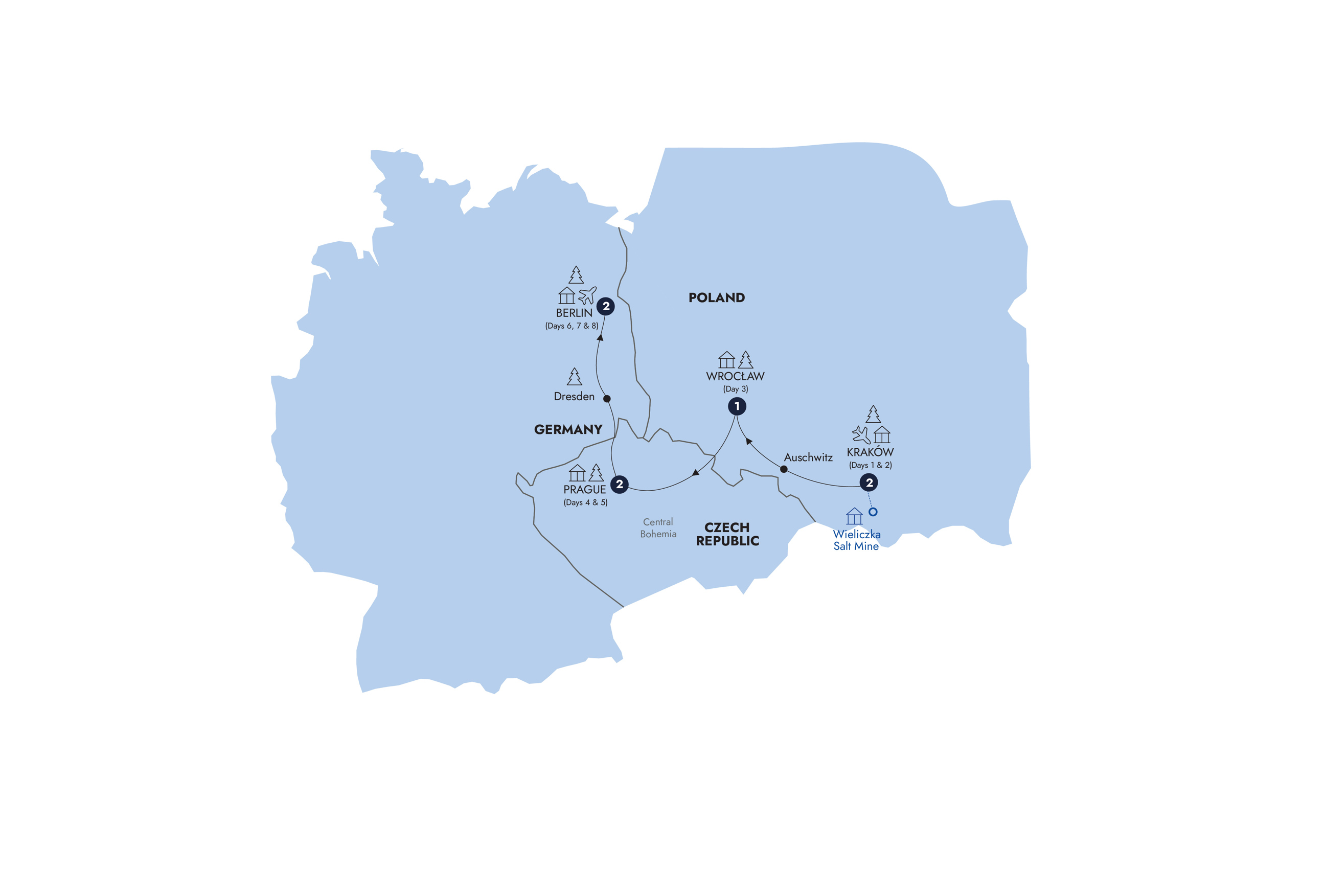 Take your taste buds on a tour of the Czech Republic discover the food markets of Prague and explore the Krakow Christmas Market in the city’s Old Town district and indulge in Berlin. Setting out from Krakow, get a sense of Poland’s old-world charm with your Local Expert as you ascend Wawel Hill to the Renaissance Castle and cathedral—the final resting place of the Kings of Poland. Known as the Venice of Poland, Wrocław is a wonder to behold with its 150 bridges spanning five rivers and twelve islands, not to mention the Baroque grandeur of the Rynek Christmas markets. In the German capital, see what remains of the Berlin Wall, admire the painstakingly restored Reichstag and soak up the festive magic among the market stalls of Gendarmenmarkt square.