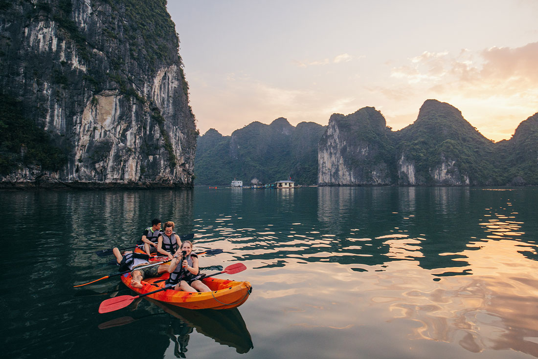 Travel by private minibus to the spectacular UNESCO World Heritage site of Ha Long Bay. This is one of Vietnam’s most beautiful places – a bay of emerald waters dotted with sandstone islands and caves. Here, you’ll go on a cruise to explore Surprise Cave and the surrounding rock formations, and in the warmer months, you can go kayaking or opt for a swim at Ti Top Island. You’ll spend the night on a traditional cruising boat, under the moon and stars of a clear night sky. The sailing junk (traditional sailing boat) has twin-share cabins with air-conditioning and private facilities. There's also a dining room and bar where you’ll have all your meals, including a fresh seafood lunch and dinner. For sunset, maybe grab a drink at the bar and head out on the deck with your travel buddies for a gorgeous night!
