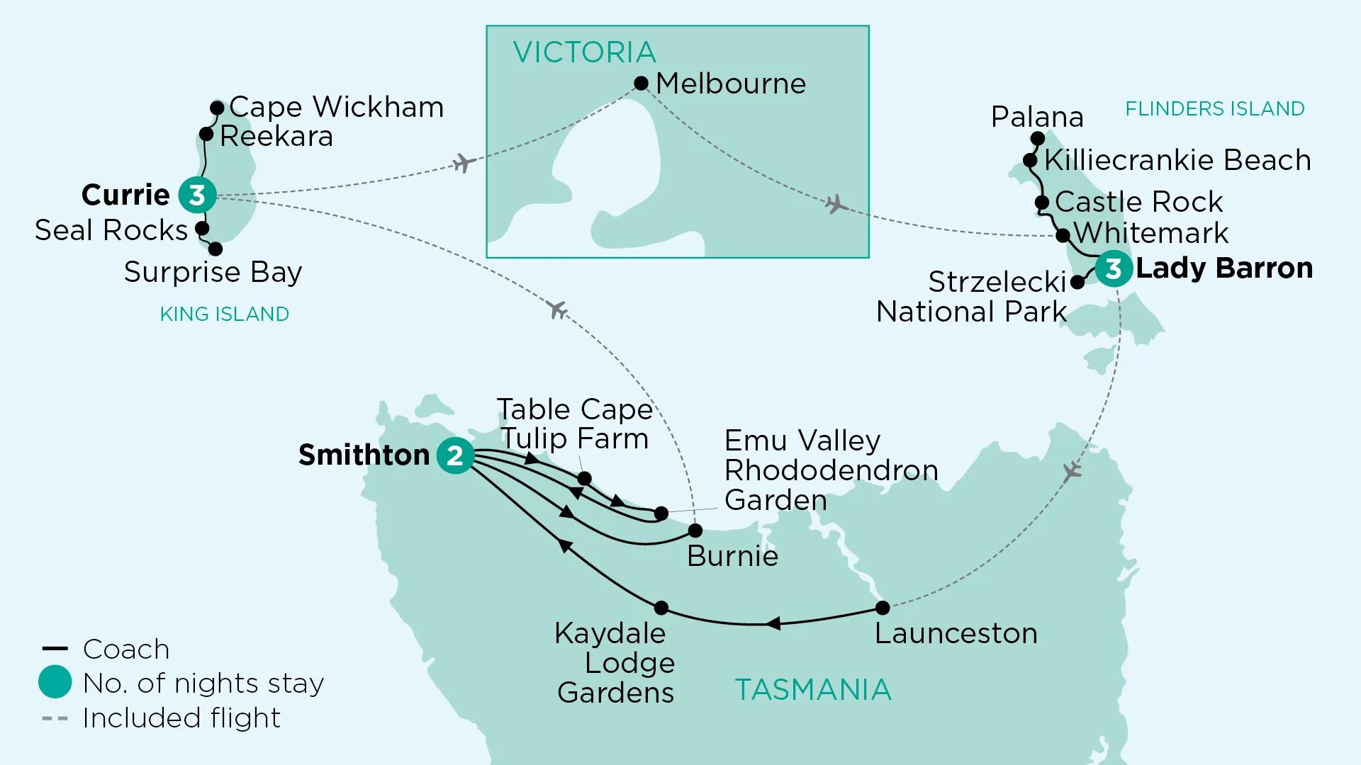 Travel in a small group to Flinders Island, King Island and mainland Tasmania, discovering their flourishing coastal landscapes and rich histories. Enjoy guided tours of stunning gardens, including Emu Valley Rhododendron Garden and Table Cape Tulip Farm. Discover the fascinating 7,000-year-old calcified forest and the impressive Cape Wickham Lighthouse. Taste award-winning cheeses at King Island Dairy and savour meals that showcase the local produce. This journey offers a perfect blend of natural beauty, historical sites and culinary delights, making it an unforgettable experience for nature and garden enthusiasts.