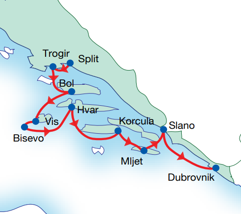 The numerous islands and reefs that comprise the Dalmatian coast provide a clear incentive to take a cruise. The small ships do not sail at night and instead dock in port so that you can spend time exploring the destination, soak up the atmosphere and sample the local cuisine. Ships also dock in a number of secluded bays and beaches during the day to allow you to swim and enjoy the beauty of the coast. The incredible indented coastline, coves, beaches sheltered by pine woods, small towns and villages scattered along the coast are waiting for you.