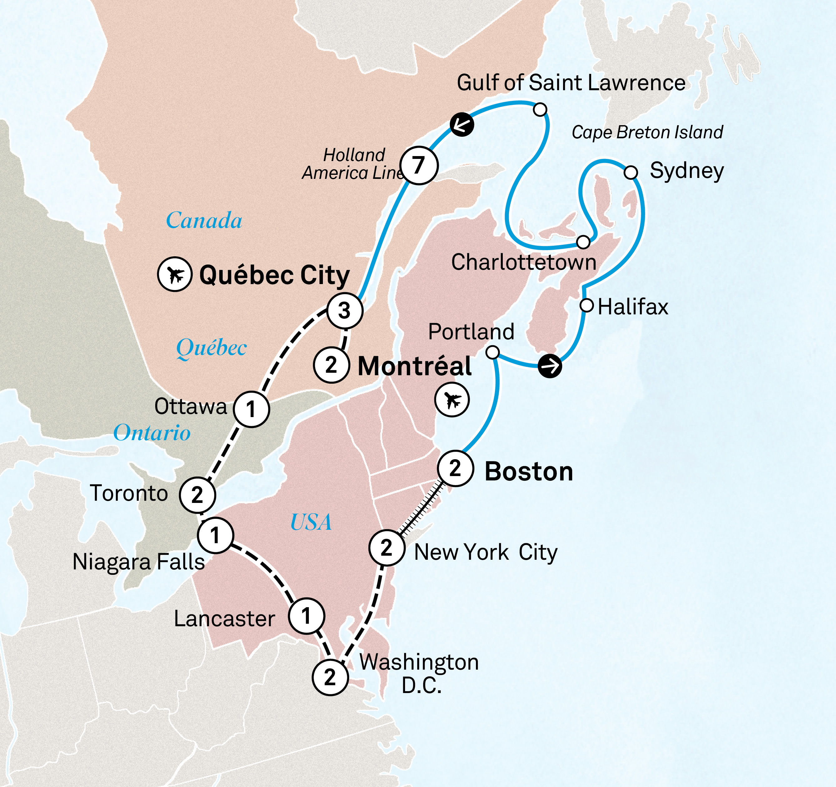 A journey across borders, cultures and time, this 24 day journey combines the elegance of Eastern Canada with the vibrancy of the most iconic US cities. From the Rideau Canal and the power of Niagara Falls to the lights of Broadway and a cruise of New England, experience the rich histories, diverse people and iconic sights of this storied North American coastline.