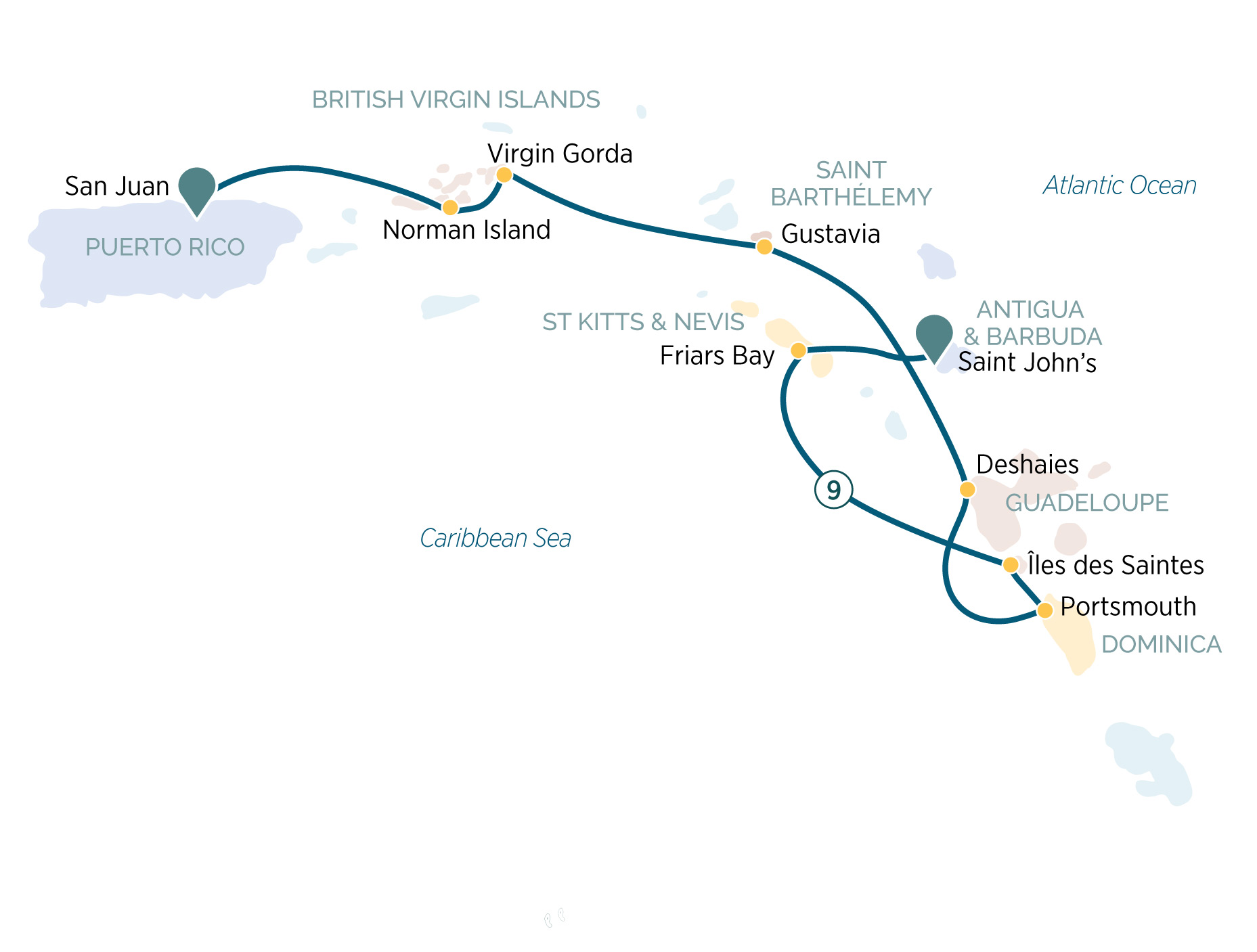 Embark on this unforgettable 10-day cruise on board your luxury yacht through the spectacular East Caribbean, where each stunning destination reveals its individual charm, exquisite beauty, fascinating colonial heritage and the warmest of welcomes.