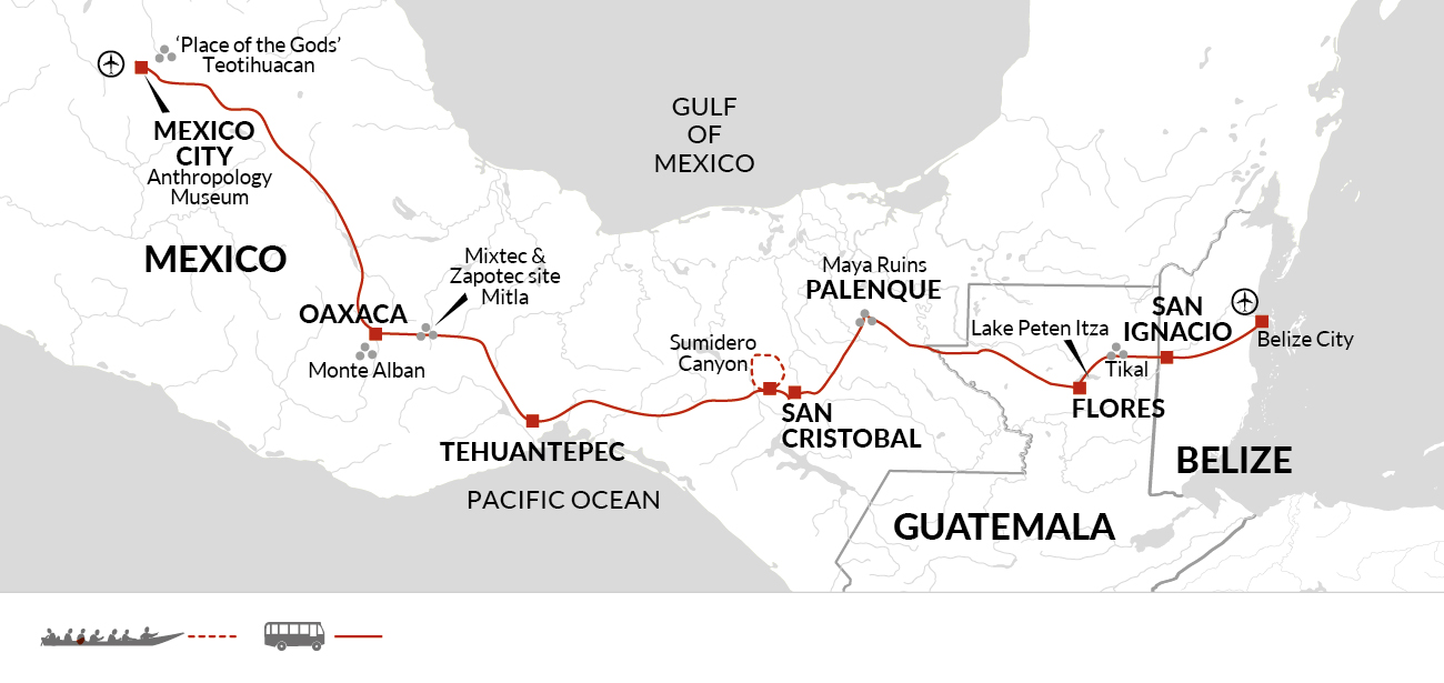 We'll leave Palenque early in the morning and travel for around 3 hours to the El Ceibo Border. After crossing into Guatemala, we'll continue for another 3 hours to the picturesque town of Flores. Located on the shores of Lake Peten Itza, Flores is a very laid-back city with a rich history. It is one of the oldest continuously inhabited settlements in the Americas and was the last Maya city to fall to the Spanish. Today will be a long travel day, and we expect to arrive in Flores in the mid-afternoon.