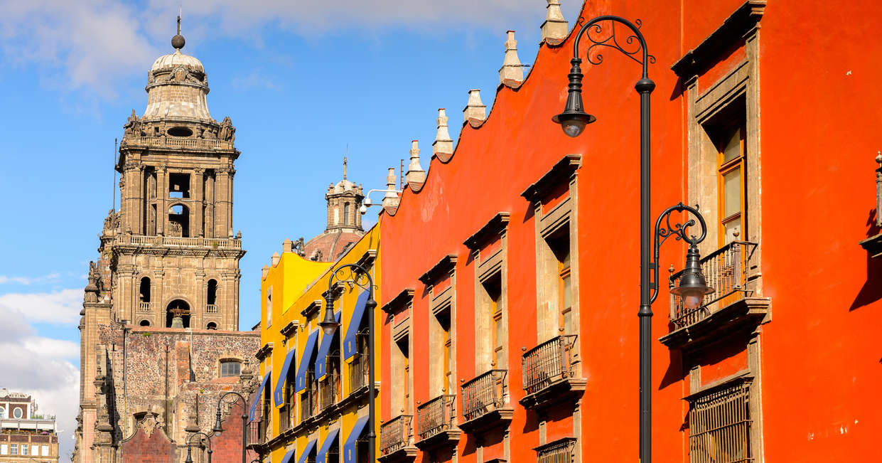 We'll head out to explore the city like a local this morning, on foot and by public transport. The Zocalo is the vibrant heart of the city; the main square that has been a cornerstone in public gatherings since ancient times. We'll walk down to the centre from the hotel, taking a trip to a local pasteleria en route to try some traditional sweet bread. The National Palace is located on the east side of the square - the President lives here as his permanent residence and we'll take a look at it from the outside, along with the grand metropolitan cathedral. The Zocalo also gives us our first taste of Mexico's ancient history - the well-preserved remains of the ancient Aztec Templo Mayor can be found here, right in the bustle of the downtown district.