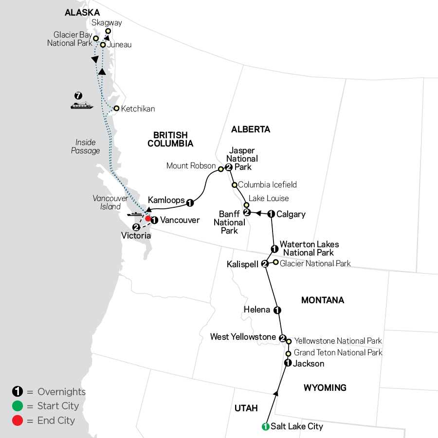 The world is within reach with everything you need for perfectly affordable touring. Cosmos includes hand-selected accommodations, guided sightseeing, and seamless transportation between destinations—with value-minded travel lovers in mind. Explore with expert Cosmos Tour Directors and Local Guides, and private, first-class, air-conditioned motorcoach with free Wi-Fi (where available). Enhance your free time to explore like a local with your CosmosGO mobile app!Your Tour Includes:• Entrance fee and guided sightseeing in Grand Teton National Park, Yellowstone National Park, Glacier National Park, Waterton Lakes National Park, Banff National Park, and Jasper National Park• Orientation tours of Salt Lake City, Helena, and Victoria• Visit to Earthquake Lake Visitor Center• Visit to Missoula Smokejumper Visitor Center• Locally guided Red Jammer Bus Tour in Glacier National Park• Admission to Head-Smashed-in-Buffalo Jump, a UNESCO World Heritage Site• Guided city sightseeing in Calgary and Vancouver• Ticket for the Icefields Explorer Experience at Columbia Icefields• Ferry to/from Vancouver Island• Admission to Butchart Gardens, Vancouver Island• Alaskan cruise on Holland America’s MS Koningsdam or MS Zaandam with Holland America’s ‘Have It All Premium Cruise Package,’ featuring a signature beverage package, dinner in a specialty restaurant, $100 shore excursion credit, and Wi-Fi package.