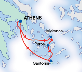 A wonderful program for independent travelers who wish to spend more time on several islands in the beautiful Cyclades. Combining sightseeing in Athens with island hopping to Mykonos, Paros and Santorini, this program lets you experience the best of Greek island life! 11 Nights accommodation in 4 star hotels, all transfers and all ferries included.