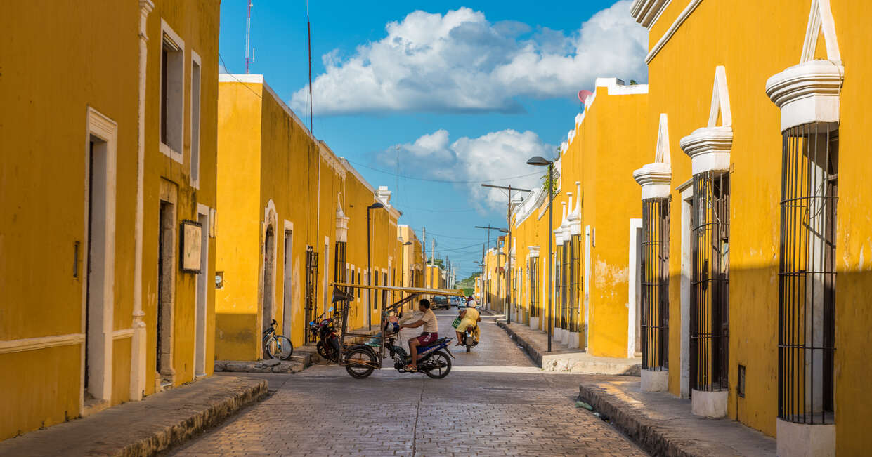 After finishing our cycle ride, we'll hop back in the van and travel 70 kilometres/43.4 miles to Izamal, also known as the 'Yellow City'. We'll visit the ancient Mayan site & Convento de San Antonio de Padua, and then continue on to a city tour of this incredibly photogenic city, learning about the Spanish influence on the Maya. Please note, depending on arrival time and sunset hours, we might move this to the early morning of day 5 - our tour leader will advise.