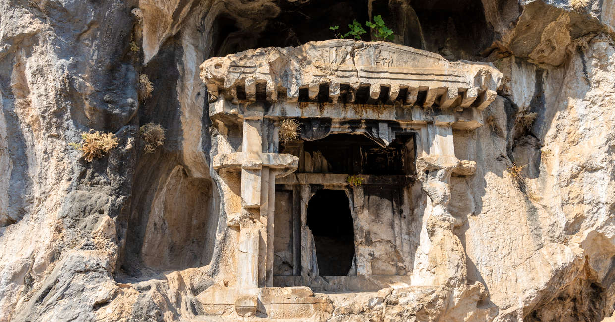 This morning, we'll enjoy a relaxing breakfast before taking a walk around Fethiye to look at the remains of Telmessos and the Amyntas tomb carved into the rocks above the town. Telmessis is situated in a natural harbour and has both Lycian and Carian influences. Equally cursed and blessed, this harbour town has good water supplies and fertile farmland, however frequent and powerful earthquakes periodically wreak havoc; the last major one was in 1953.