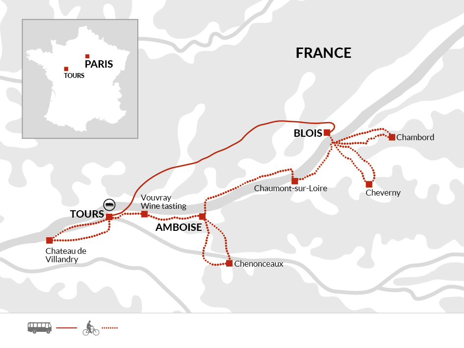 Today offers a perfect chance to relax and soak in all that Amboise has to offer, but if you're eager to hop back on the bike, your tour leader will guide you to the stunning Chateau de Chenonceau. Today's optional ride is longer and has significantly more hills than we have experienced so far on this trip, so we have graded today's ride as moderate.