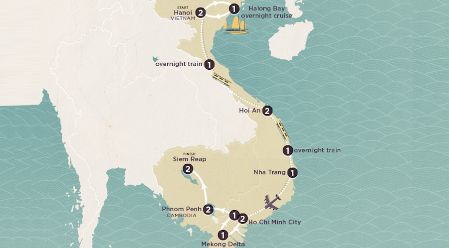17 days. Two of the most slap-you-in-the-face-unbelievable countries you’ll ever experience. Who’s ready to go exploring? You know it, we know it – even the carved faces at the Bayon temple know it. Vietnam and Cambodia are famous the world over for their mind-blowing natural beauty, ancient architecture and unique cultures. And this trip? It's here to help you see the very best that both have to offer. We’re talking amazing cities. Fascinating history. Tropical scenery. Food that could actually change your life. Need we go on?