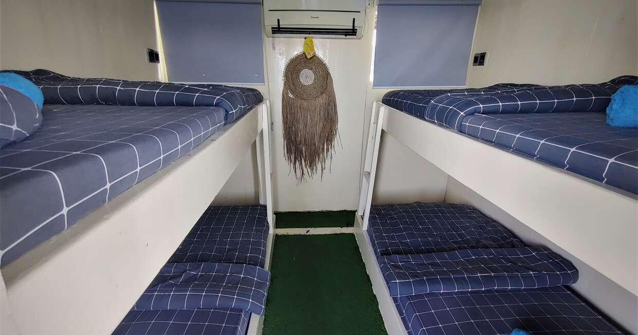 We'll stay overnight on our private boat in simple shared accommodation, made up of double and single bunk beds in two mixed-sex cabins. Facilities include two toilets and there is a saltwater shower as well as a limited amount of fresh water for bathing.