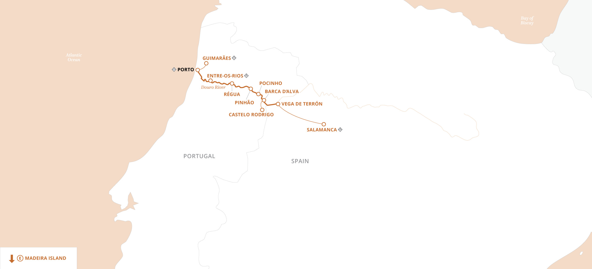 As you follow the Douro River through Portugal and into Spain, you’ll cruise past steeply terraced hillsides, quaint villages, and acres of ripe vineyards. Enjoy private tastings of Port. Explore Porto’s historic Ribeira district, home to iconic rabelo boats, cutting-edge cuisine, and a thriving art scene. Wind your way through the dramatic landscapes of the UNESCO-designated Douro Valley, heading ashore to visit charming quintas and meet the winemakers who operate them. See the famous university of Salamanca, Spain, and visit the mountaintop village of Castelo Rodrigo. There’s no better way to discover Europe’s best-kept secret than this scenic and all-inclusive river cruise!